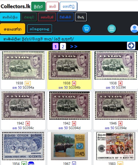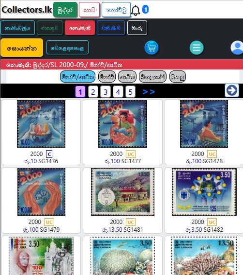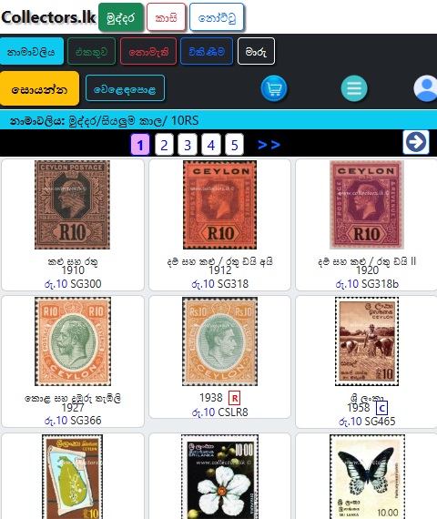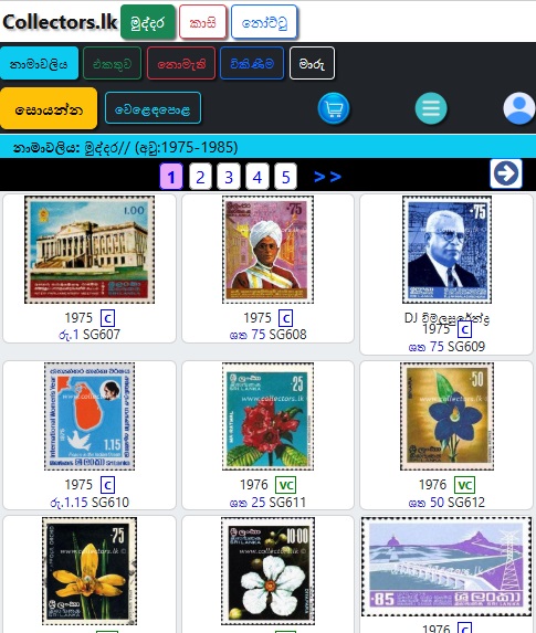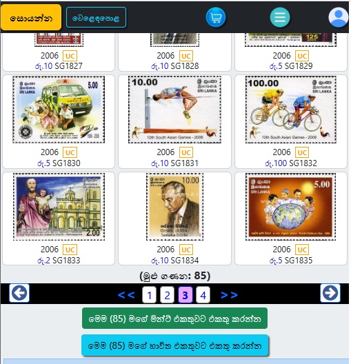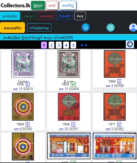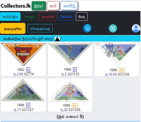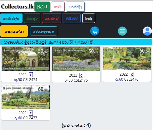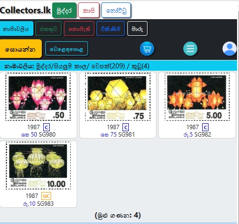මුද්දර/සිහිවටන පත්ර/මුල්දින කවර /කුඩා පත්ර/කට්ටල වලින් තෝරන්න.