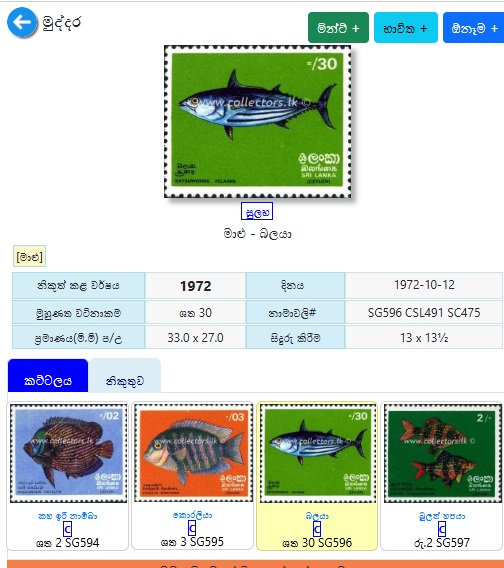 මුද්දර/කාසි/නෝට්ටුවක්/සිහිවටන පත්රිකා .... පිළිබඳ තොරතුරු