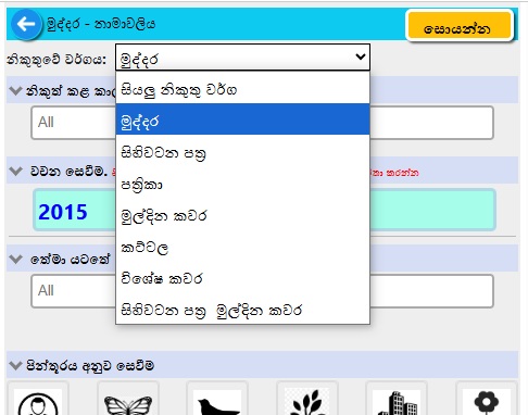 සෙවීම 1 - නිකුත් කිරීමේ වර්ගය (මුද්දර සඳහා පමණක් අදාළ වේ).