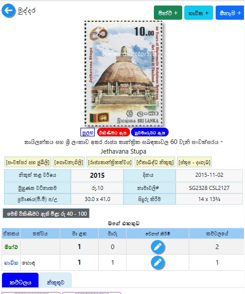 ඔබට පහසුවෙන් ඔබේ එකතුව මාර්ගගත එකතුවක් ලෙස Collectors.lk හි පවත්වා ගත හැකිය