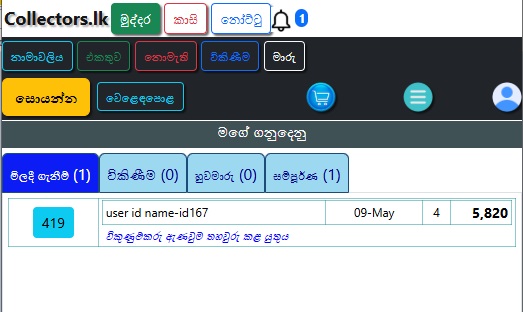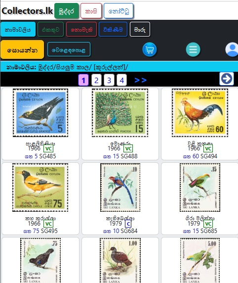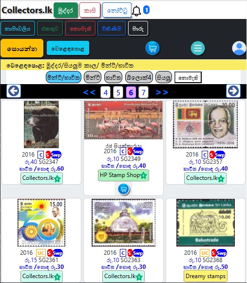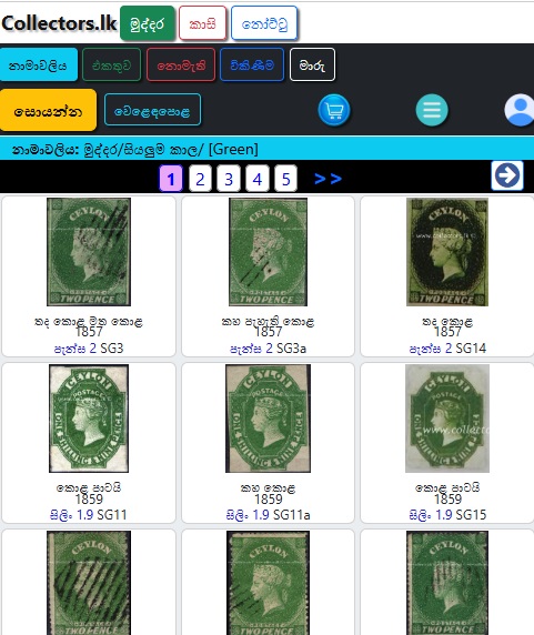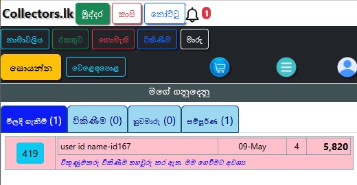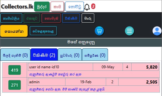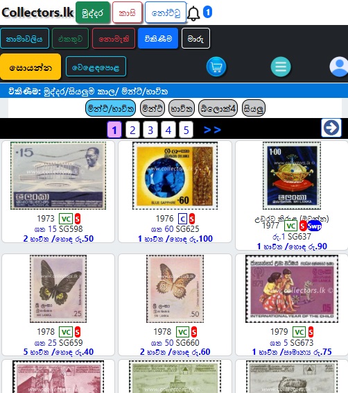මෙවිට විකිනීමට ඇති භාණ්ඩ වල මින්ට්/භාවිතා කළ, වර්ගය, විකුණුම් මිල සහ විකුණුම්කරුගේ නම පෙන්වනු ඇත.