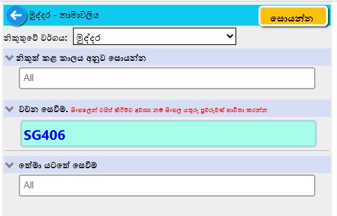 නාමාවලි අංකය අනුව සොයන්නේ කෙසේද