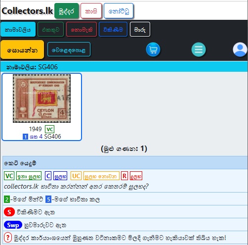 . විකිණීමට ඇත [S] - මෙම අයිතමය මේ මොහොතේ www.collectors.lk හි විකිණීමට ඇත