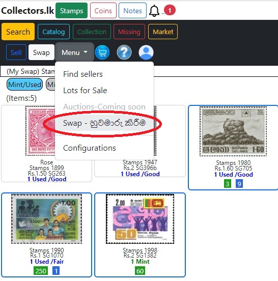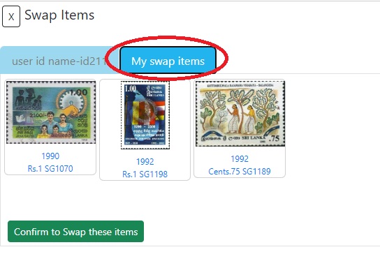 අනෙකුත් සාමාජිකයින් සමග මුද්දර හුවමාරු කරගන්නා ආකාරයසෑම අයිතමයකටම අදාළ බොහෝ තොරතුරු තිබේ.